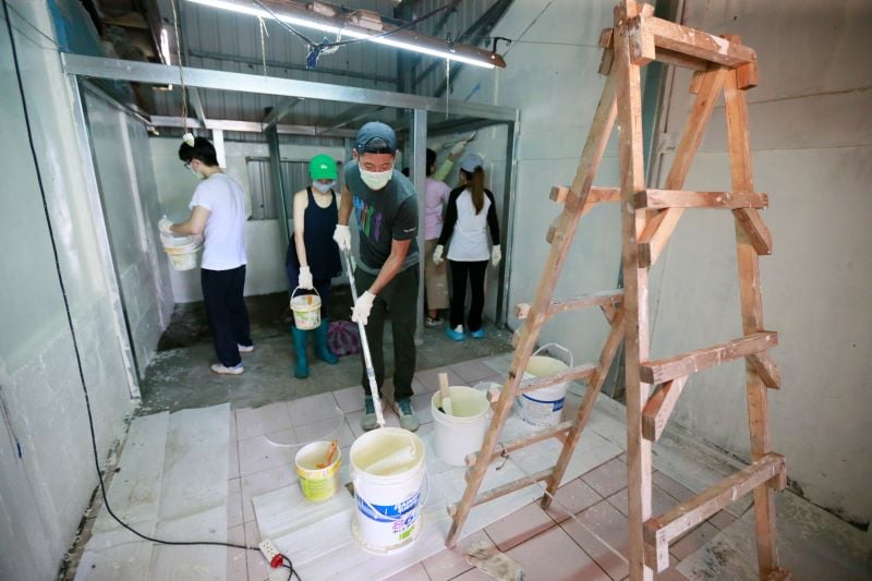 牽著晴寶的手踏進剛刷完油漆的屋裡,晴寶媽感動的頻頻向志工伙伴們道謝!不畏炙熱的天氣,Meta台灣臉書夥伴志工等一行10人,換上輕便衣物,戴上手套、口罩及面罩,分工手持刮板、油漆刷及滾筒,為晴寶家的牆壁進行粉刷,大家將汗水化為力量,為的就是期盼為早療兒晴寶打造一個舒適明亮的居住環境。